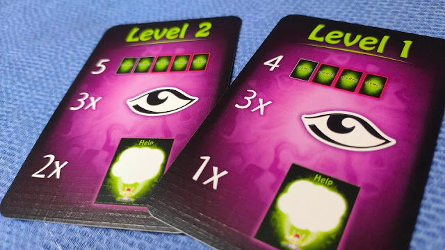 Sono 12 le carte livello che indicano quante carte distribuire, quante ne potrà vedere la veggente e quanti aiuti potrà offrire.