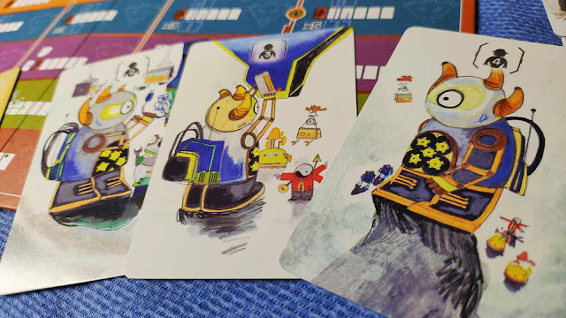 I robot sono rappresentati su 50 carte che ne mostrano la famiglia, ovvero il modello e le dimensioni, da 1 a 5.
